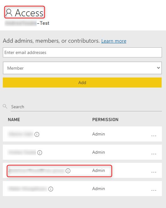 - Nella schermata appena apertasi è stato aggiunto come amministratore il gruppo creato in precedenza.