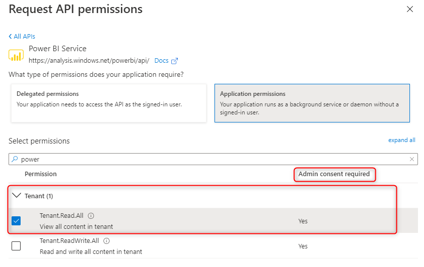 - Dopo di che l’applicazione è stata autorizzata a chiamare le API esposte da Power Bi.