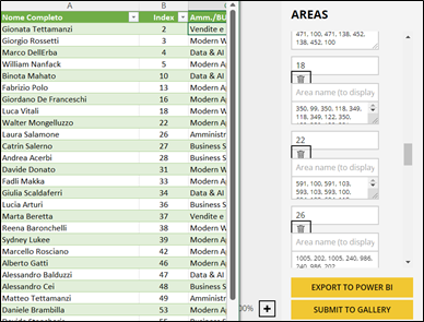 Nell’immagine sottostante vediamo come è stato assegnato ad ogni area l’indice identificativo presente nel Data Model. Ad esempio, 4 è l’identificativo dell’utente Marco Dell’Erba nel database e lo stesso indice è stato assegnato all’area che indica la sua postazione.