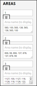 In entrambi i casi, nel pannello laterale denominato “AREAS”, contenente tutte le informazioni relative alle aree, trovi le voci indice e coordinate, che si popolano automaticamente, ed il nome, che invece, essendo facoltativo, puoi compilare manualmente.