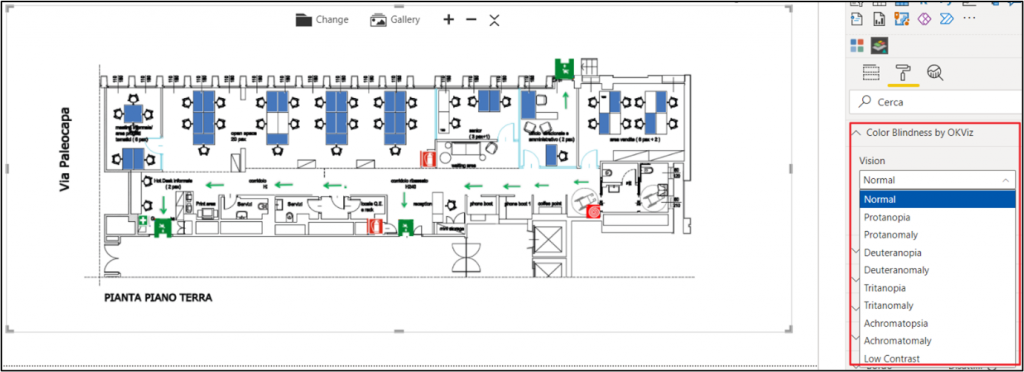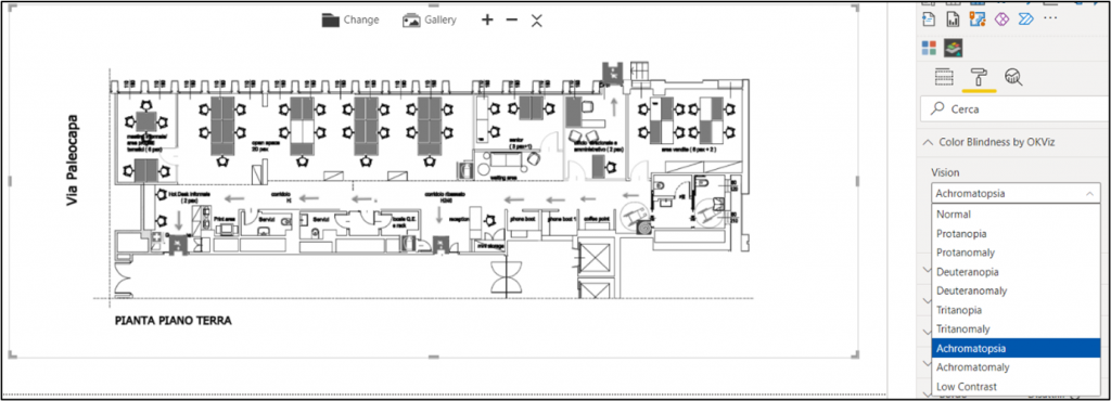 - Color Blindness by OKViz à è un filtro che riguarda la colorazione e si applica all’intero Visual importato. Nelle immagini sottostanti vediamo due differenti tipi di colorazioni.