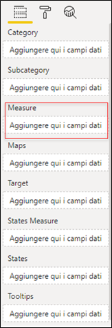 Avrai notato che, sebbene tu abbia inserito il visual all’interno della pagina, non hai la possibilità di aggiungere la mappa/planimetria. Questo perché, prima di poterlo fare, è necessario che venga popolato il campo relativo alle Measure, che approfondiremo all’interno di questo paragrafo.