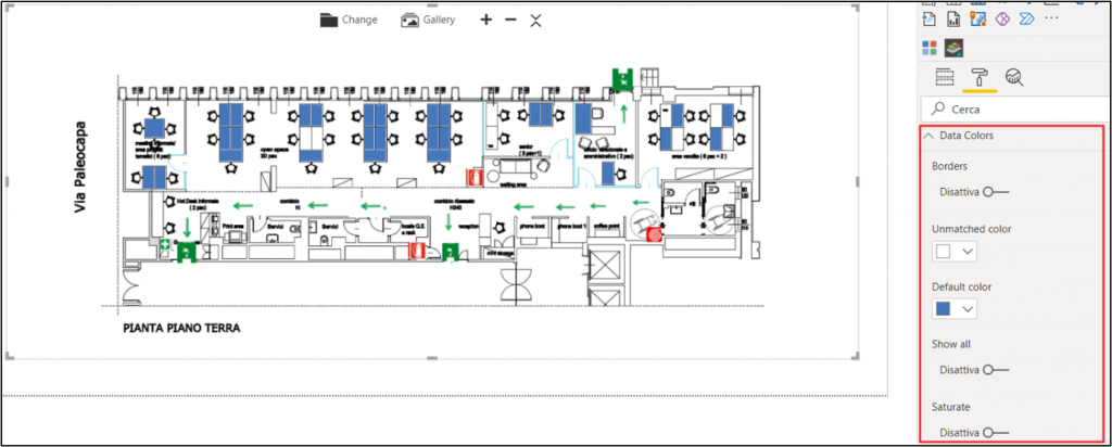 Se hai guardato attentamente il video avrai notato che all’inizio dello stesso abbiamo popolato solo il campo Category. Al passaggio del mouse su una delle postazioni, si evidenzia solo quella su cui è stato effettuato il click. Inserendo poi la Subcategory, al cliccare del mouse, non si colora più solo la singola postazione, ma anche tutte quelle i cui proprietari appartengono alla stessa Business Unit.
