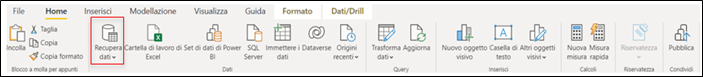 Ora è necessario importare i dati di cui disponi in Power BI attraverso la funzionalità “Recupera dati”