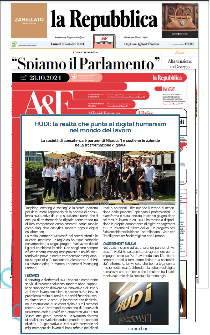 Questo il titolo dell'articolo che oggi è presente su La Repubblica, nella sua versione nazionale cartacea, nella sezione Affari&Finanza. Siamo molto fieri sia per l'importanza del giornale che racconta la nostra storia, sia perchè rappresenta la possibilità di descrivere il nostro lavoro e tutto l'impegno che quotidianamente viene profuso da ognuno di noi.